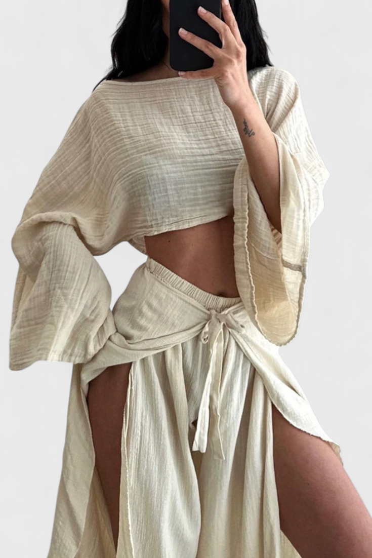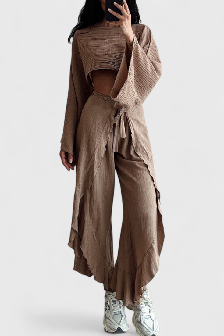 Maeva Conjunto Casual de Dos Piezas con Abertura y Lazo