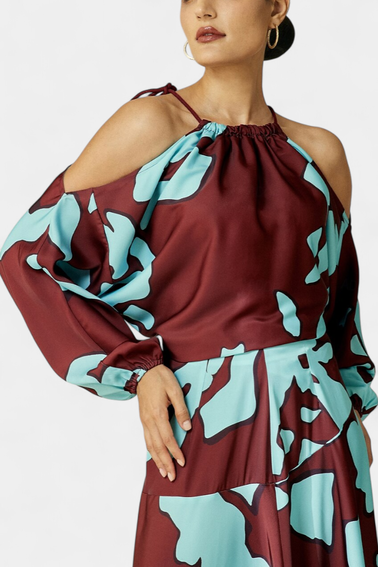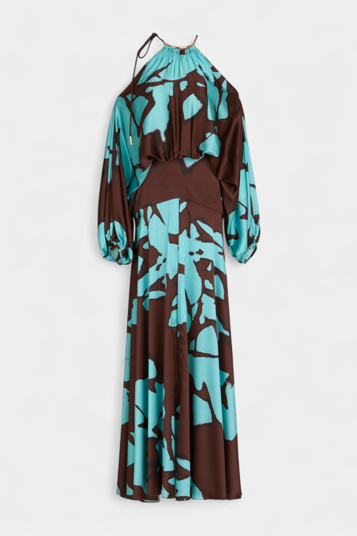 Élégance etérea avec un tour contemporain. La robe Monte est conçue pour votre silhouette vaporeuse, avec des manches à ouverture et un imprimé abstrait dans des tons contrastés qui attachent la lumière à chaque mouvement. Votre escorte avec des détails métalliques et une ceinture entaillée crée une figure stylisée avec caractère et sophistication.