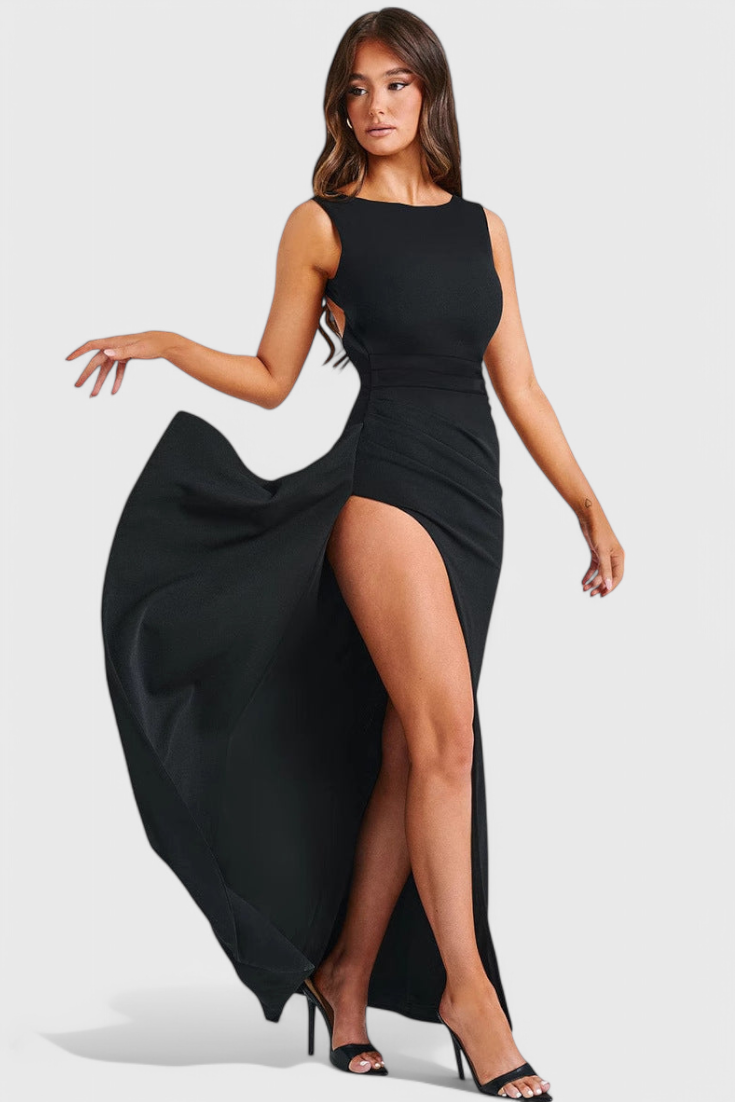 Marion Robe de Satin avec Espalda Ouverte et Grande Ouverture
