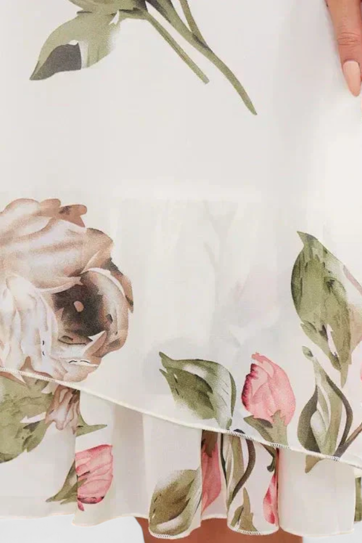 Tameka Robe de Gaze Fluide avec Pétalos et Mangas Transparentes