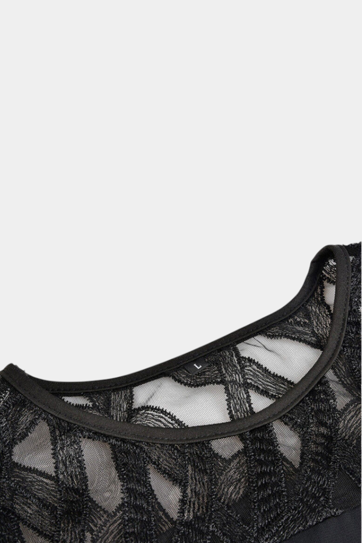 L'escote redondo et les mangas à encaje añaden un détail féminin et équilibré